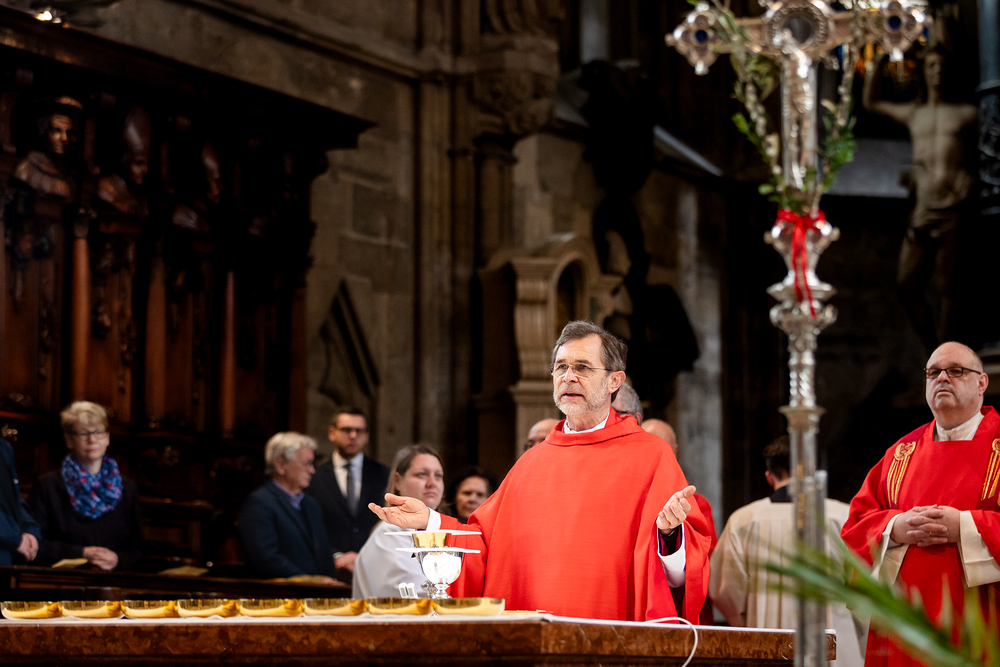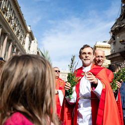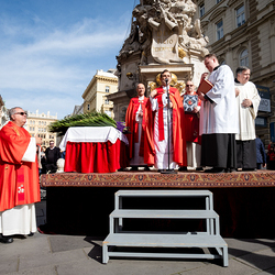 Der Palmsonntag ist ein Tag, der von Freude und Jubel geprägt ist. Er erinnert an Jesu Einzug in Jerusalem, bei dem die Menschen ihm zujubelten und mit Palmzweigen winkten. Jesus wird gleichsam als König gefeiert. Das ist vergleichbar damit, wie heute hohen Persönlichkeiten der rote Teppich ausgerollt wird. Die Palmweihe des Stephansdoms, geleitet vom Apostolischen Administrator Josef Grünwidl, fand bei der Pestsäule am Graben statt. Anschließend zog die Prozession feierlich in den Stephansdom ein. Wir waren mit der Kamera dabei.