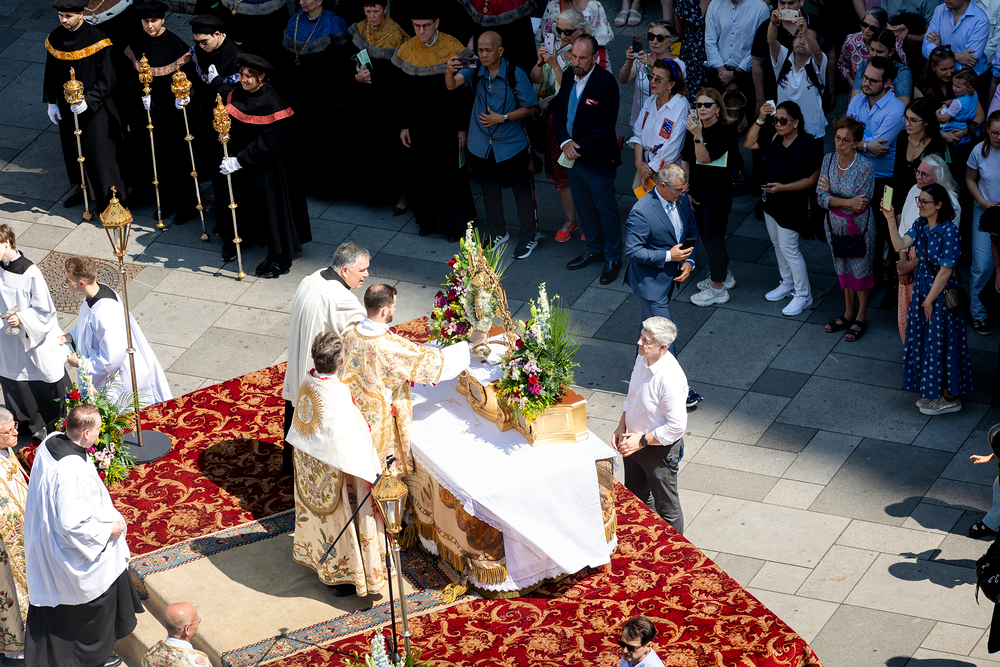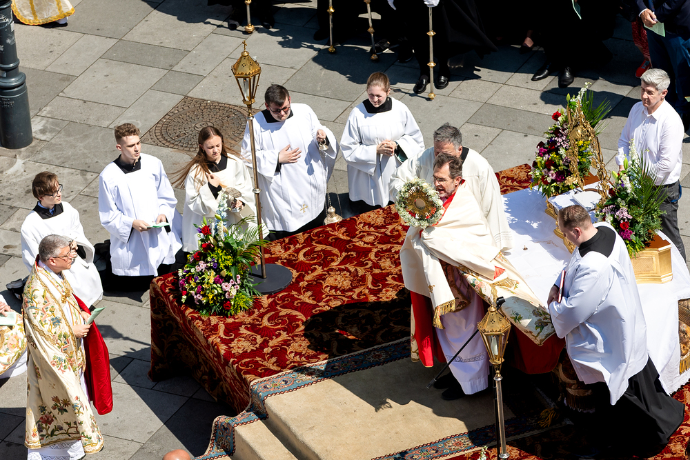 Josef Grünwidl betonte beim Stadtumzug anlässlich Fronleichnam die untrennbare Verbindung zwischen dem religiösen Feiertag und der christlichen Verantwortung, Gottes Schöpfung zu bewahren und eine „ökologische Umkehr“ angesichts der Klimakrise einzuleiten. Er dankte allen, die durch nachhaltiges Handeln und politischen Einsatz dazu beitragen, notwendige Maßnahmen zu ergreifen, um die dramatischen Folgen des Klimawandels abzuwenden. Die Fronleichnamsprozession, die vom Stephansdom ausging und Stationen am Michaelerplatz sowie am Graben bei der Peterskirche umfasste, zog erneut zahlreiche Gläubige und kirchliche Gruppierungen an. Auch politische Vertreter waren anwesend. Wir waren mit der Kamera dabei.