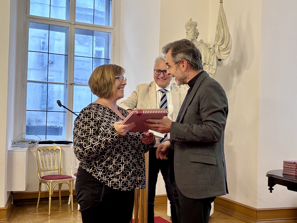 Time to say goodbye: Es ist eine gute Tradition in der Erzdiözese Wien, jedes Jahr die frisch gebackenen Pensionistinnen und Pensionisten zu verabschieden und ihr Engagement zu würdigen. Am Donnerstag, 25. September 2025, waren unsere ehemaligen Mitarbeiterinnen und Mitarbeiter zu einer Führung im Dom Museum Wien und einem anschließenden Festakt im Festsaal des Erzbischöflichen Palais eingeladen. Die Verabschiedung in den Ruhestand wurde von flotten Klängen junger Musikerinnen des „Trio Terzetto“ begleitet – darunter ein schwungvoller Tango von Astor Piazzolla.